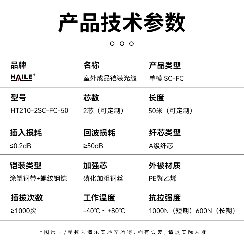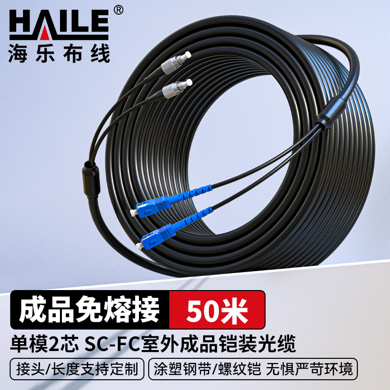 HAILE海乐 成品铠装光缆SC-FC室外2芯单模工程光纤跳线光缆尾纤 免熔接户外架空