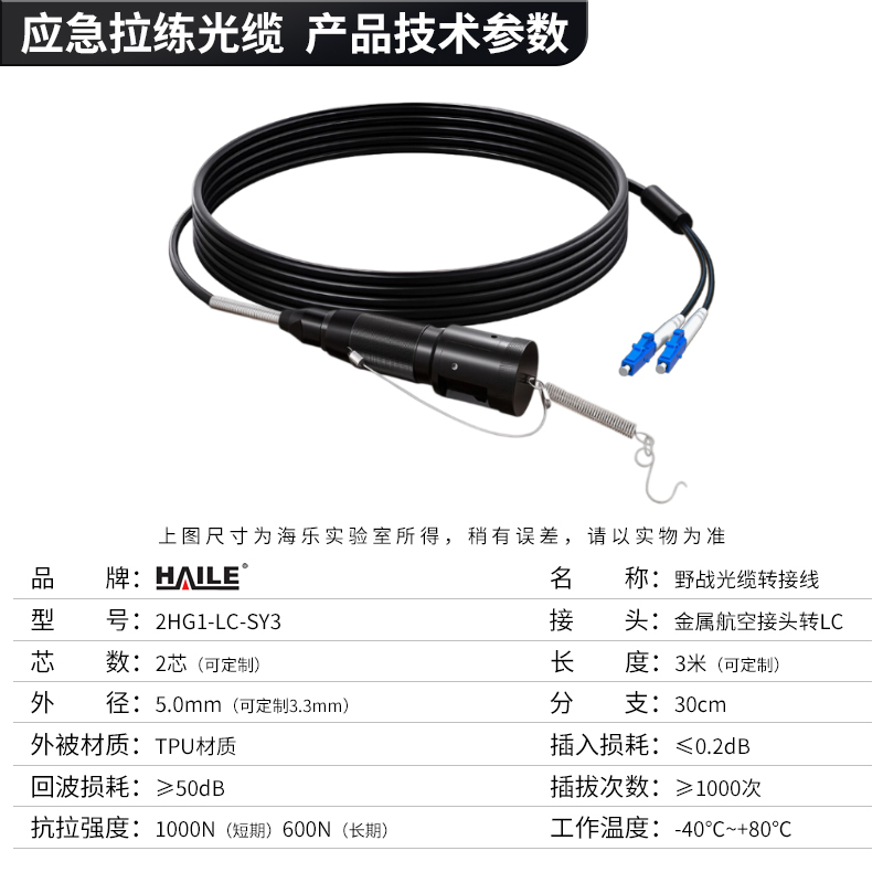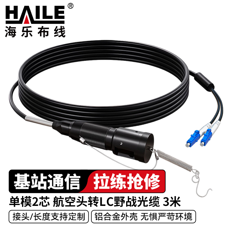 HAILE海乐 单模2芯野战光缆室外应急拉练转接线 航空接头转LC 金属航空接头