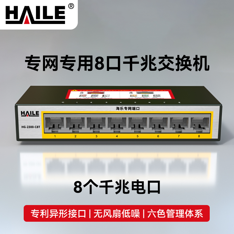 HAILE海乐内外网8口千兆交换机水晶头异形结构绿色专网网络分流器HG-2300-D8T