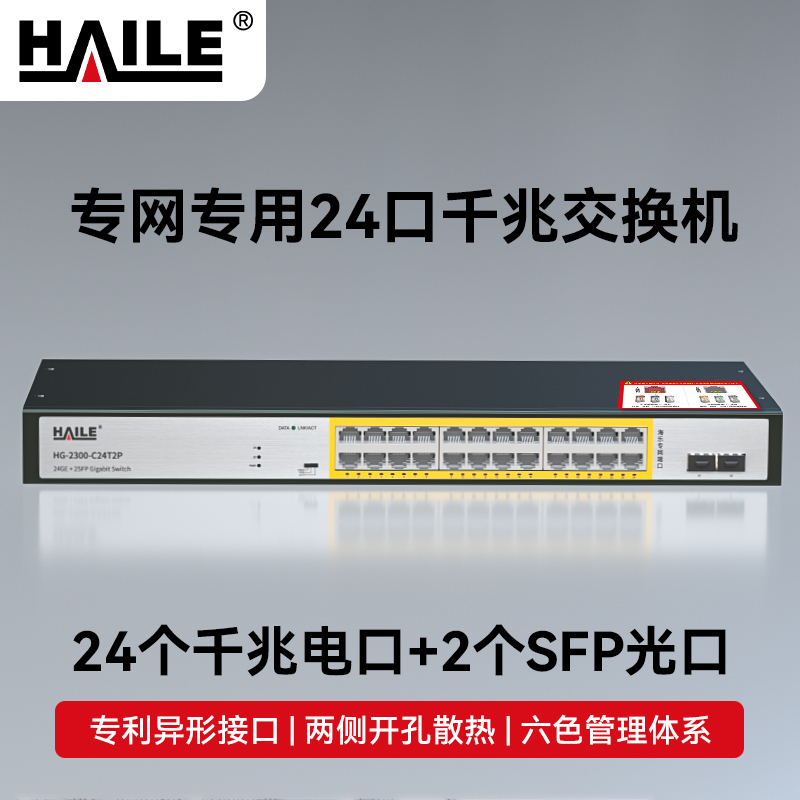 HAILE海乐内外网24口+2SFP口千兆交换机水晶头异形结构白色专网网络分流器HG-2300-W24T2P