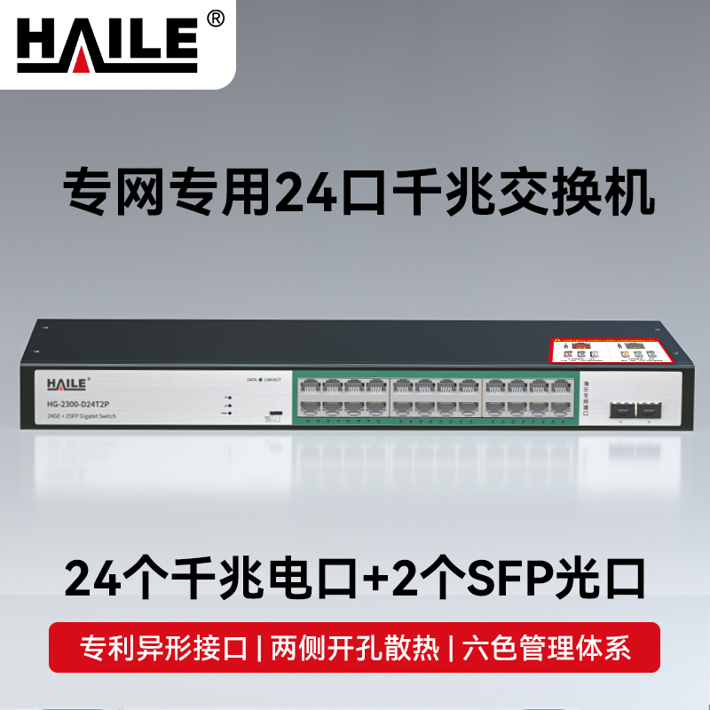 HAILE海乐内外网24口+2SFP口千兆交换机水晶头异形结构灰色专网网络分流器HG-2300-K24T2P