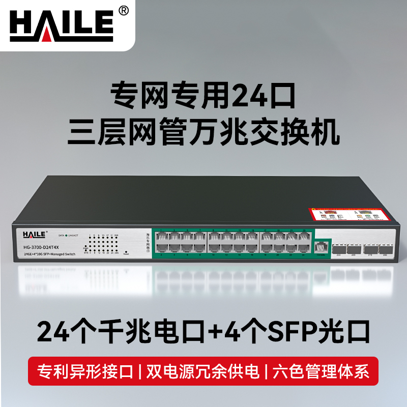 HAILE海乐内外网24口+4SFP口三层网管万兆交换机水晶头异形结构灰色专网网络分流器HG-3700-K24T4X